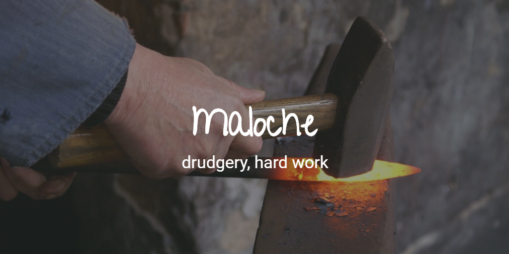 When, as a kid, I first heard this word being used by workers in North-Rhine-Westfalia, it always struck me as odd. Today I know why. It’s actually an ancient Hebrew word for “drudgery” or hard work: “Melacha” (מְלָאכָה) that made it into German via Yiddish. Note, how the “a” at the end is again turning into an “o”.